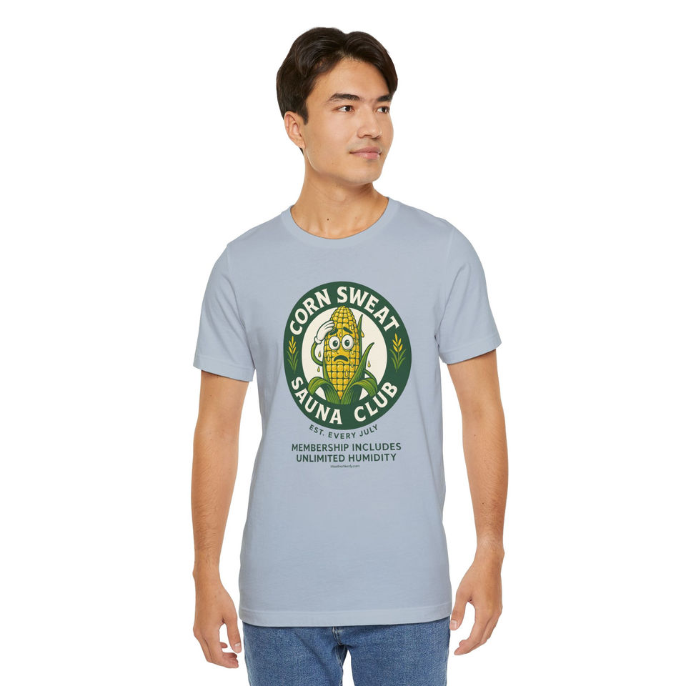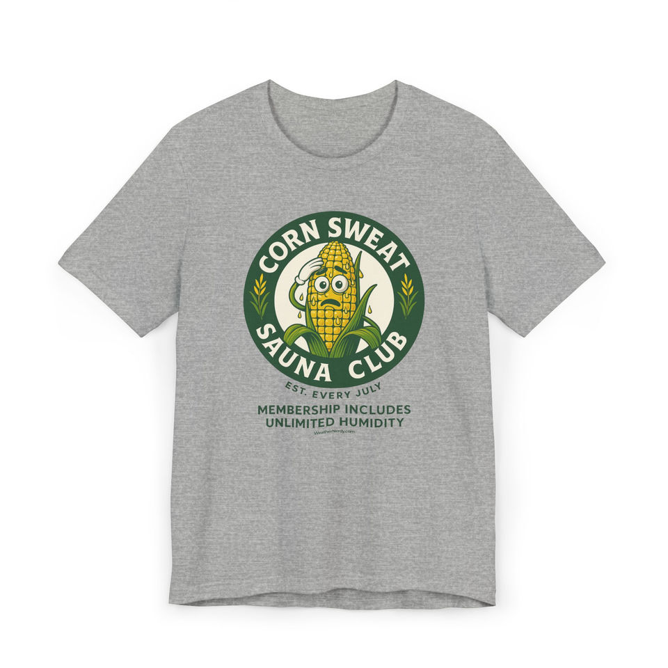 With a playful nod to that extra humidity your friendly neighborhood cornfield brings every July, this tee is your badge of honor for surviving heat indexes that feel like a tropical vacation… without the beach.